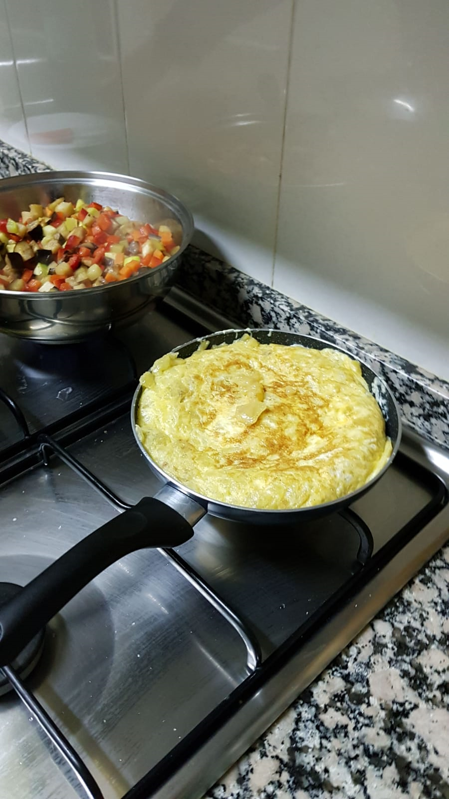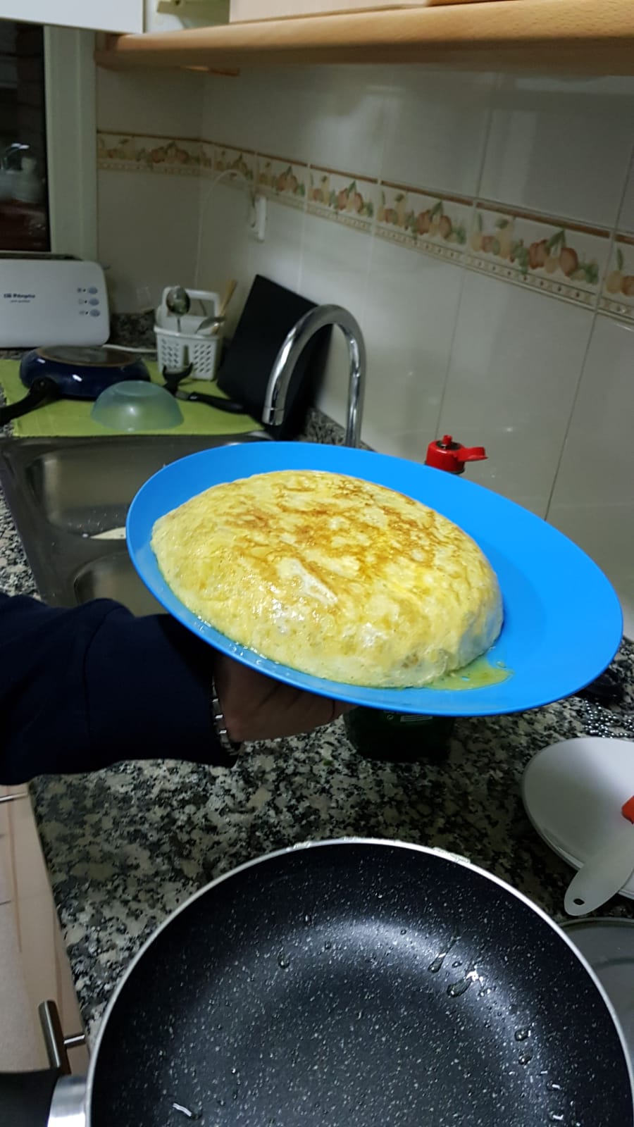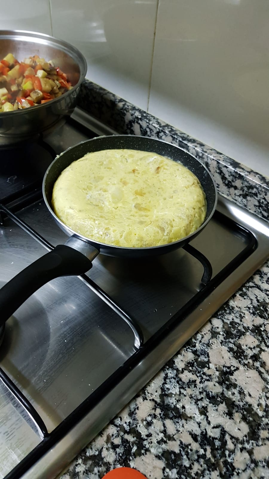 - Quan estigui cuit un costat de la truita, la gires, i deixes coure l’altre costat (el punt de cocció és al gust).